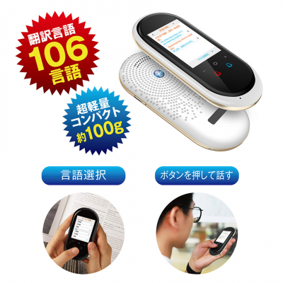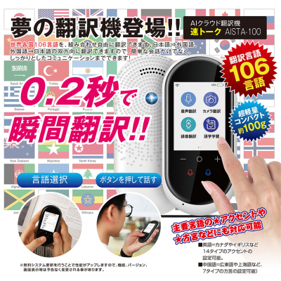 この度、三金商事株式会社よりコンパクトでありながらも最速0.2秒の高速通訳が可能な高性能翻訳機