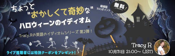 アメリカで使われるちょっとおかしなハロウイーンテーマのイディオム10個の意味や語源、具体的な使い方が学べる30分のライブセミナーを、ハロウィーン当日に開催!