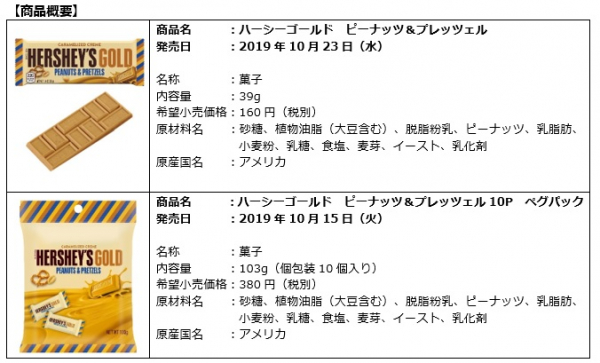 食料品の輸入販売・卸を行う株式会社鈴商(本社:東京都新宿区、代表取締役社長:鈴木基司)は、米国で人気の『ハーシーゴールド ピーナッツ&プレッツェル』を2019年10月15日(火)と23日(水)に新発売します。