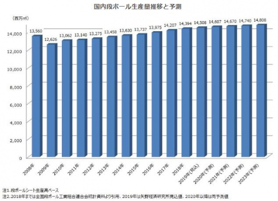 【矢野経済研究所プレスリリース】段ボール市場に関する調査を実施(2019年) 段ボールシート生産高は増産続くも、段ボール原紙の増産ラッシュで需給バランスに懸念