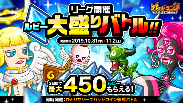 『城とドラゴン』で「リーグ」&「ルビー大盛りバトル」が10月31日(木)より開催! 3日間で最大450ルビーGET!