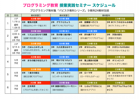 タイムソフト合同会社(青森県田子町 代表:古田和美、以下「タイムソフト」)は、2020年度から小学校でのプログラミング教育全面実施に向けて、小学校教師と栄養教諭のための「プログラミング教育 授業実践セミナー(全6回)」を八戸(青森県)と盛岡(岩手県)の2会場で開催します。