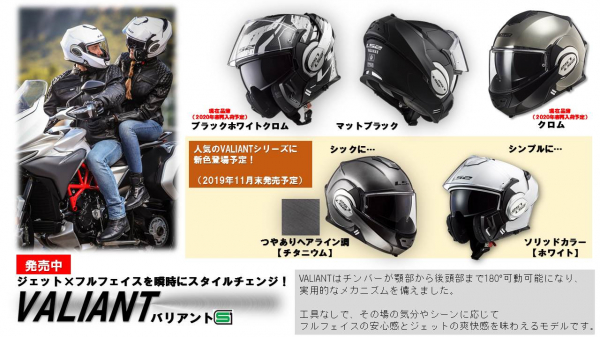 バイク乗車用ヘルメット LS2 HELMETSの日本総代理店である株式会社セイデン(本社:群馬県高崎市 代表取締役社長:有賀 一師)は、2019年11月27日(水)LS2 HELMETS『VALIANT』新カラーモデルを全国のバイク用品販売店(Web販売会社含む)にて発売します。