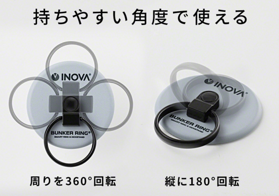 リング部分は周りを360度、縦方向に180度回転するため、自分にあった持ちやすい角度で使うことができます。