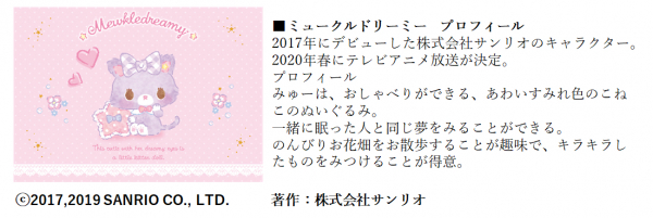 ミュークルドリーミー キャラクター紹介ページ:https://www.sanrio.co.jp/character/mewkledreamy/