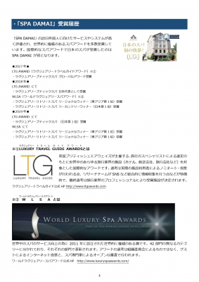 「SPA DAMAI」では、訪日外国人に向けたサービスやシステムを積極的に取り入れています。英語表記のメニューはもちろん、訪日外国人の方々に向けたプランも提供しています。また、「SPA DAMAI」の訪日外国人向けサービスが高く評価され、海外の口コミサイトでも高い評価を得ており、世界的に権威のあるスパアワード※も受賞しています。当店に来店する海外顧客は夫婦やペアで来店する事が多く、その際に当店の利用チケットを奥さんや恋人にプレゼントするという事も珍しくありません。(下記のデータ参考)