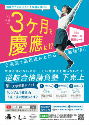 偏差値45.7、12月中旬から慶應大学SFCに合格の逆転合格請負塾下克上が高2生を対象に11/30(土)に『入塾説明会』を開催