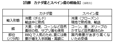 様々な地域を検討した結果、スペインでは、豚にコーン、麦、オリーブのかすなど自然素材の餌のみを使用しており、肉質がとても良く、獣臭もほとんどありません。さらにスペイン生ハムで培った高い熟成技術を生かし、現地で熟成し、良い状態を保ったまま輸入が可能です。チャーシューに使用するバラ肉は、スペインでは需要がそれほど多くない部位であるため、コストダウンにも成功しています。「喜多方ラーメン坂内」では、高品質のスペイン産熟成白豚を安定的かつ安価に輸入する販路を確保し、おいしいチャーシューを提供しています。