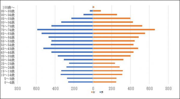 ◆対象物件からの半径1KM圏内の男女別年代構成の例