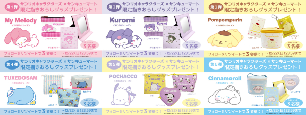 ポーチやミラー、パスケースなど!可愛さをぎゅーっと詰め込んだサンキューマートだけの描き下ろしグッズを全品390円+taxでお届け致します!