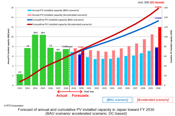 RTS Corporation (Head Office: Tokyo, Japan, CEO: Osamu IKKI) is a Japanese consultancy exclusively engaged in photovoltaic (PV) power generation. RTS has released the English version of “Forecasting PV Installed Capacity in Japan toward FY 2030/2050 (2019 - 2020 Edition)” on Monday, December 9, 2019.