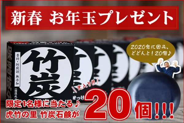 新春お年玉プレゼント!虎竹の里 竹炭石鹸20個が抽選で1名様に当たる