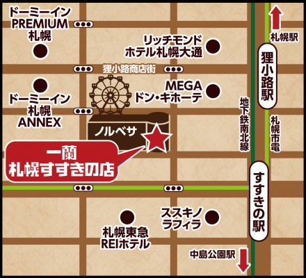 ・住所:北海道札幌市中央区南3条西5丁目1-1 ノルべサ1F