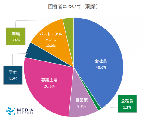 回答者の職業割合は、会社員 40.6%(203人)、専業主婦 26.6%(133人)が多くなっています。