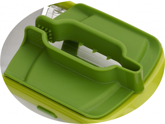 また、「3 in 1フードグリップ」が完全に指先をガードするため、ブレードで指先をケガする心配なく安心してスライスすることができます。