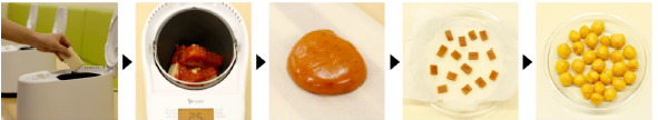 (1)切りもち、トマトソース、ハーブソルトをもちブレンダーのねり容器に入れ、本体にセットしスタートボタンを押す。