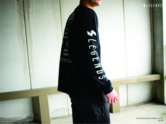 国籍や宗教、環境、さらには時間という壁を超え、世界中のトレーニー達とボーダレスに繋がっていくのは、もう間もなくだ。そんな時代のムードをこのTシャツに表した。レジェンズが未来の旗艦店として位置付ける五大都市をレイアウトしたグラフィックは、世界中のトレーニーと繋がっていく私たちの強い意志と姿勢を示している。