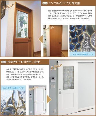 是非、お好きなステンドグラスを組み込んだ、あなただけの「本物のステンドグラスドア」で、明るく、美しく輝くエレガントなお部屋、空間を築いてみてはいかがですか。