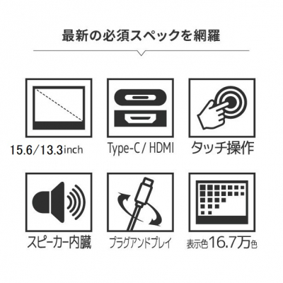 商品名 : Type-C / HDMI接続対応 モバイルディススプレイ 15.6 / 13.3インチ