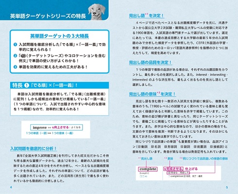 ターゲットシリーズは1984年の刊行以来、“でる順” “一語一義”という一貫したコンセプトによって多くの大学受験生から支持をいただいてきました。また、付属の音声がCDから音声ダウンロードに、そしてアプリの開発など、学習ツールの変化に対応してきたことも、ご好評いただいてきた理由のひとつです。