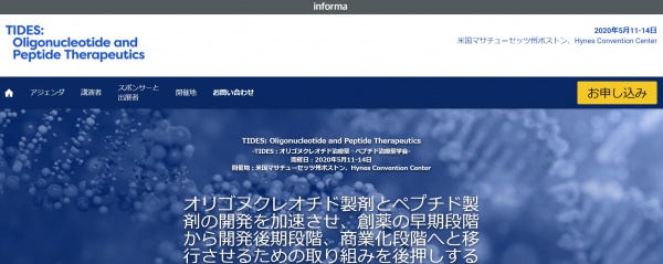 会議:「TIDES:オリゴヌクレオチド治療薬・ペプチド治療薬学会」