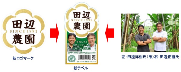統一ロゴマークは「一本のバナナが巡ってやがて大きな花になる」をデザインし、ラベルは生産者である田邊兄弟の笑顔を前面に押し出しました。統一ロゴマーク刷新を機に、ご購入いただける消費者や販売業者の皆様に、その美味しさとこだわりがより伝わるよう努力を進めて参ります。