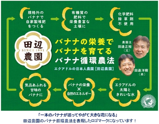 ・田辺農園の文字を囲むバナナは、「バナナの栄養でバナナを育てるバナナ循環農法」をイメージしています