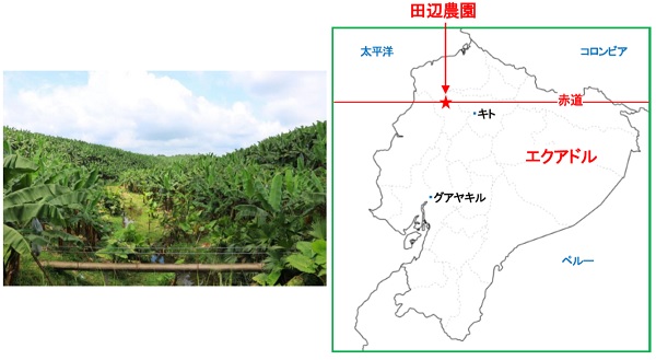 「田辺農園バナナ」は、世界一のバナナ輸出国である南米エクアドルで広島県出身の田邊正裕氏と弟の田邊洋樹氏の二人が運営する田辺農園(本社:エクアドル サント・ドミンゴ県コンコルディア地区)が生産しており、その全量をANAフーズが買入れ、日本国内で販売している高級バナナです。ANAフーズは田辺農園と2005年にバナナの輸入販売の契約を締結、今年6月に販売開始15周年を迎えることとなりました。