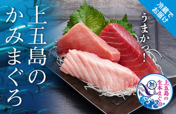 上五島のかみまぐろ ついに通販にて解禁! 旨みと脂がギュッとつまった、トロけるような最高の「本まぐろ」 「生」にこだわり1度も冷凍処理せず冷蔵便で産地直送!