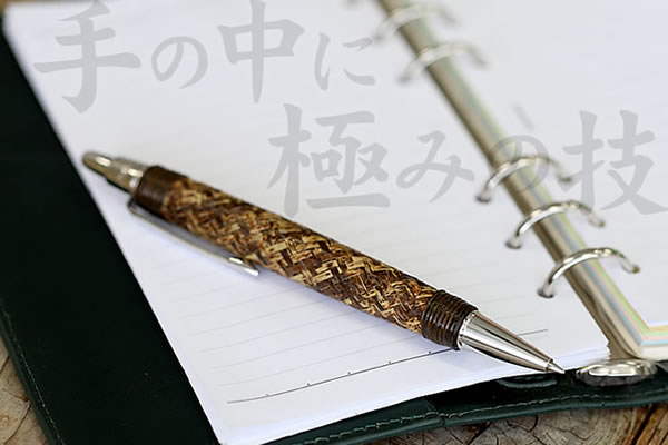 パソコンやスマートフォンを使うことが多く、手書きの機会も少なくなりました。そんな時代だからこそ、自然素材の竹編み模様が異彩を放つこだわりの一本を、懐に携えてみてはいかがでしょうか。