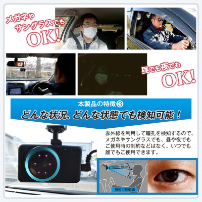 ●ドライバーの状態を最短1秒で検知し音声で警告!