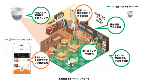 テックファームは、飲食チェーンや商業施設を対象に「Putmenu」の販売・導入支援を2月19日より開始します。あわせて、施設内の混雑状況を見える化するAIカメラやトイレIoT、リピート客の囲い込みと来店管理を実現する電子スタンプなど、自社のソリューションサービスと組み合わせることによって飲食店をトータルサポートします。