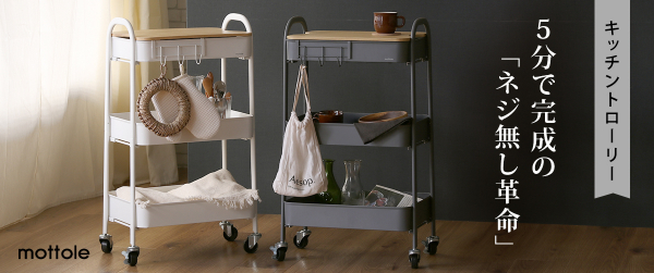 5分で完成の「ネジ無し革命」なキッチントローリーがmottoleより発売。