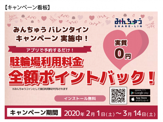 アイキューソフィア株式会社(本社:東京都新宿区、代表取締役社長:中野 里美、以下 当社)は東京都遊技業協同組合(拠点:東京都新宿区 理事長:阿部 恭久、以下 都遊協)と令和元年11月に連携することが決定し、都遊協の対象店舗にて「みんちゅうSHARE-LIN※」(シェア-リン)の導入台数が100台(現在170台余)を突破致しました。これを記念して、「バレンタインキャンペーン」と称し、令和2年2月1日〜3月14日の期間、対象店舗のみんちゅう駐輪場が無料で利用できるキャンペーンを実施し、令和2年2月12日、遊技会館(新宿区)にて当社と都遊協による共同記者会見を執り行いました。