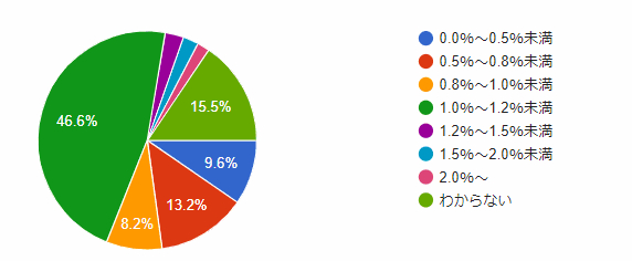 一番多いのが「ポイント還元率1.0%〜1.2%」で46.6%