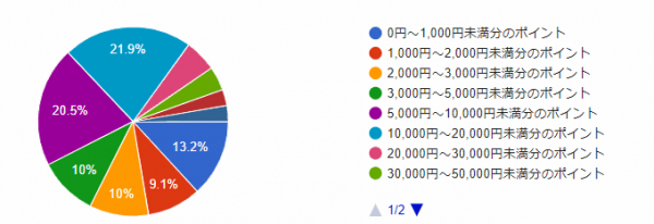 一番多いのが「10,000円〜20,000円未満分のポイントを貯めた方」で21.9%