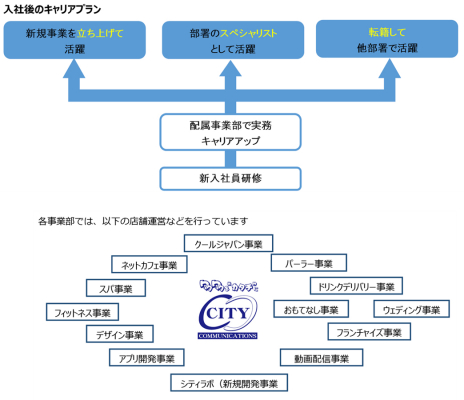 シティコミュニケーションズは総合エンタテインメント企業らしく、体験型説明会を多く行っております。中でも人気の説明会が『アニソンカフェ店舗体験型会社説明会』。入社2年目で新規事業となるアニソンカフェを立ち上げ、現在は5店舗の統括責任者として活躍中の社員が、実体験を語ります。その後は、アニソンカフェ店舗体験として、歌って踊って盛り上がるエンタテインメント空間に早変わりします。