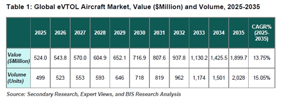 eVTOL航空機は2025年以降に商用化の見込み、2035年までに18億9,970万ドル超に