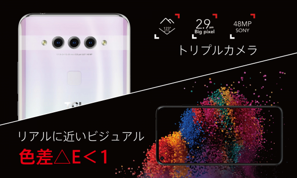 PLEXは、スマートフォンの中ではミドルレンジモデルに分類される、4G LTE通信対応のAndroidスマートフォンです。チップセットにはQualcomm社製Snapdragon 675のオクタコアCPUを採用し、メモリ(RAM)は6GB、ストレージ(ROM)は128GB、ディスプレイサイズ6.53インチと、ミドルレンジモデルの中では、上位にあたる性能を備えています。さらに、PLEXにはトリプルカメラが搭載されており、メインカメラはセンサーが4800万画素と超高画素で、暗所撮影時に自動で切り替わる「low-light」モードやAIによるシーン認識の機能を備えています。2つ目のカメラは画素数1600万画素の123度の広角カメラ、3つ目のカメラは200万画素ながらピクセルサイズが2.9μmと非常に大きい暗所撮影用のカメラです。最大の特徴であるディスプレイは、色差△Eが1未満(TCL labによる実測値)で、よりリアルに近いビジュアルを提供します。また、通常の動画をリマスターすることで、HDR並みのコントラストと色合いを再現することができます。端末側面には、「スマートキー」を搭載し、シングルプレス、ダブルプレス、長押しにそれぞれの動作を割り当てられ、任意のアクションを呼び出すことが可能になっています。