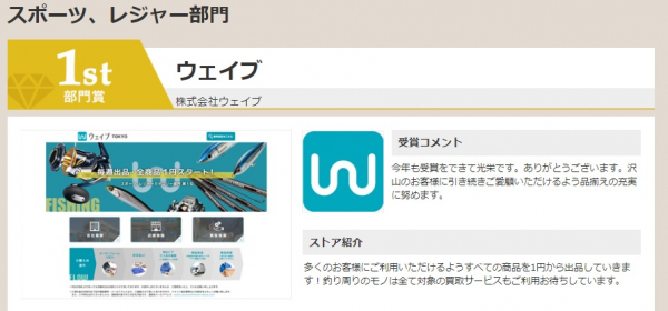 釣具買取専門店ウェイブが「ヤフオク!ベストストアアワード2019」スポーツ・レジャー部門にて2年連続の1位を受賞