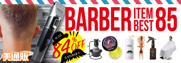 プロ向け美容材料の通信販売サイト「美通販」が、「BARBER アイテムベスト85」キャンペーンを開催!MAX84%OFF!