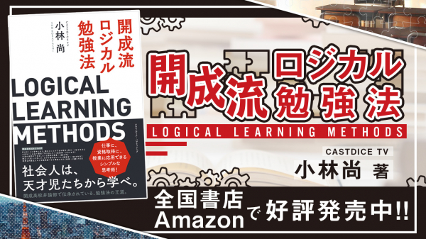 株式会社キャストダイスは将来を担うリーダーを育成することを目標に、塾や予備校などへのコンサル事業を展開するなど教育分野で幅広く活動しています。コバショーの著書「開成流ロジカル勉強法」はAmazonの複数のカテゴリでランキング1位を獲得するなど、大好評発売中です。