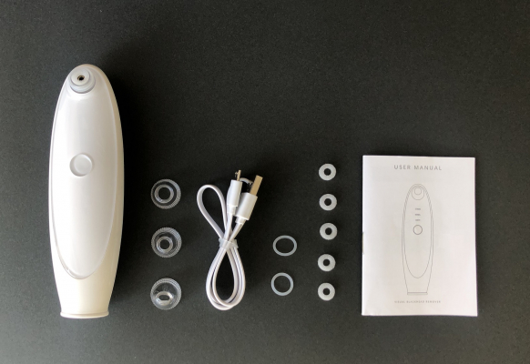 付属品:ノズル3種、充電用ケーブル、交換用レンズスポンジx5、ノズル密閉用ゴム輪x2、取扱説明書