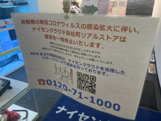 ナイセンクラウド浜松町リアルストア(ショールーム)は実店舗であるため、運営を一時休止しております。