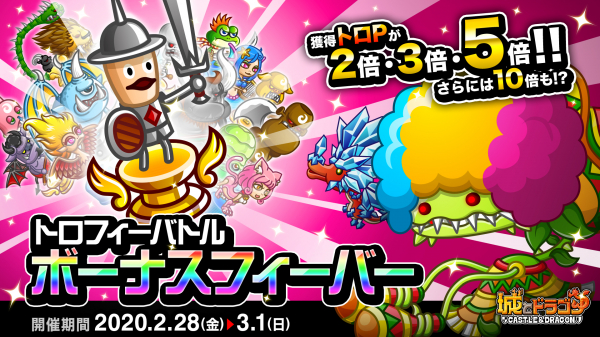 株式会社アソビズム(本社:東京都千代田区、代表取締役:大手智之)は、App Store・Google Playにて好評配信中の『城とドラゴン』で、「トロフィーバトル ボーナスフィーバー」を2020年2月28日(金)より開催いたします。