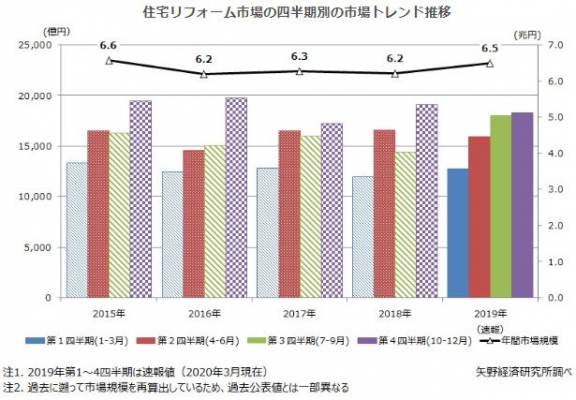 【矢野経済研究所プレスリリース】住宅リフォーム市場に関する調査を実施 〜2019年第4四半期及び2019年計〜 2019年の住宅リフォーム市場規模は前年比4.5%増の6.5兆円に