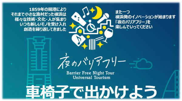 国籍や年齢や障がいに関係なく誰でも気軽に夜の横浜を楽しむことができるように、ウェブガイドマップシステムを構築し、さまざまな立場の旅行客の横浜市内滞在時間の延長を図り、横浜地域経済への貢献を目的とした事業で、公益財団法人横浜観光コンベンション・ビューロー「横浜クリエーションスクラム助成事業」にナイトタイムエコノミー株式会社が採択されています。