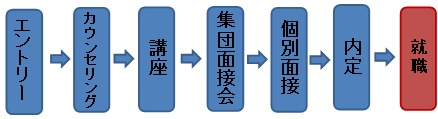 大学 4 年生向けの就職支援サービスで、就活対策ができる1Day(ワンデイ)研修から集団面接会までワンストップで無料提供しています。大きな特徴としては、59校の大学と提携(2019年1月時点)し、キャリアセンターや就職課と二人三脚で学生の支援をしていることです。キャリアセンターや就職課に相談のあった学生に対して説明会を行い、大学構内や当社のオフィスにて研修や集団面接会を実施します。大学からは、「4年生の最後まで就職支援をしてくれるので大変心強い」「1人1人の就活状況を報告してくれるので、安心して学生を任せられる」という評価を受けています。