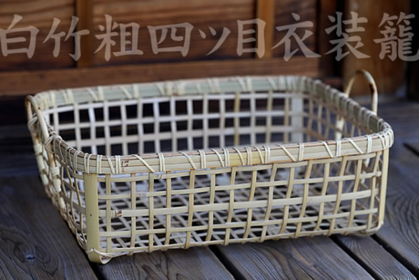 幅約48cm×奥行約38cmと使い勝手のいいサイズは、2〜3人家族で便利にお使いいただけるのではないでしょうか。自然素材の優しさが漂う洗濯かごは、ご愛用いただくほどに深い飴色へと変化し愛着を抱かせる白竹の魅力も相まって、生活の中で手放せない逸品となりそうです。白竹粗四ツ目衣装籠を、生活の中の潤いとして添えてみてはいかがでしょうか。
