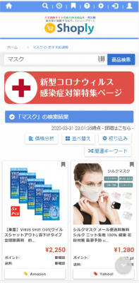 「マスク」など防疫グッズの通販在庫と価格を毎日更新、最安値の通販を探せる「新型コロナウイルス・感染症対策特集ページ」を、InSync株式会社が運営するShoply(ショップリー)が4月2日にローンチ